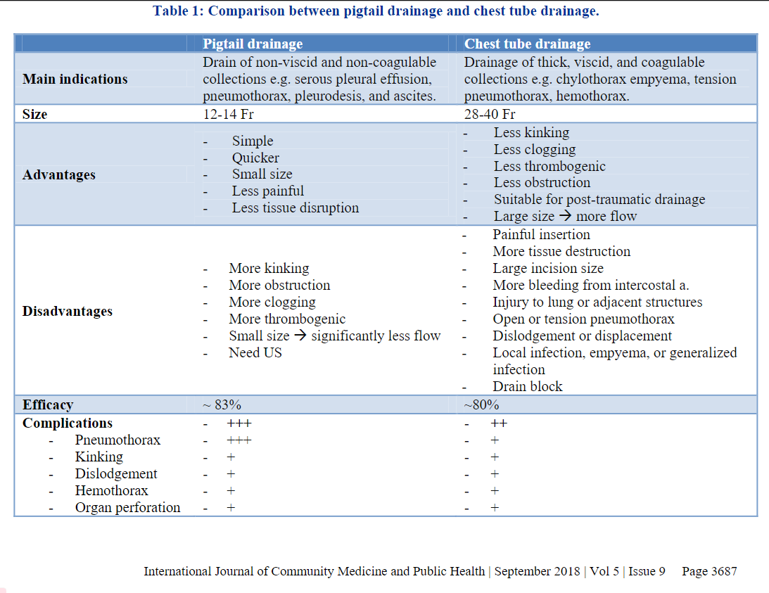 Elsayed, A., Alkhalifa, R. (2018). Implication of pigtail catheter vs chest tube drainage. International Journal of Community Medicine and Public Health, 5(9).